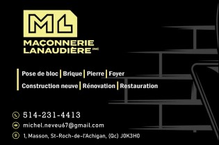 | Services | Nous sommes spécialisés en Briquetage - Maçonnerie MAÇONNERIE LANAUDIÈRE INC est une entreprise spécialisée en maçonnerie, offrant des services de haute qualité pour les secteurs résidentiel et commercial. Elle se distingue par son expertise dans la construction, la réparation et la restauration de murs de briques, de pierres et de blocs, ainsi que dans l'installation de cheminées, de façades et d'autres structures en maçonnerie.Grâce à son savoir-faire et à son souci du détail, l'entreprise répond aux besoins variés de ses clients tout en garantissant des résultats durables et esthétiques. |