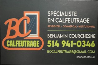 Services Depuis sa création, Bc calfeutrage Inc. est reconnu pour son expertise en Calfeutrage. Nous desservons la Montérégie,Montréal avec passion et professionnalisme. Notre mission : concrétiser vos projets tout en respectant vos exigences, vos délais et votre vision.