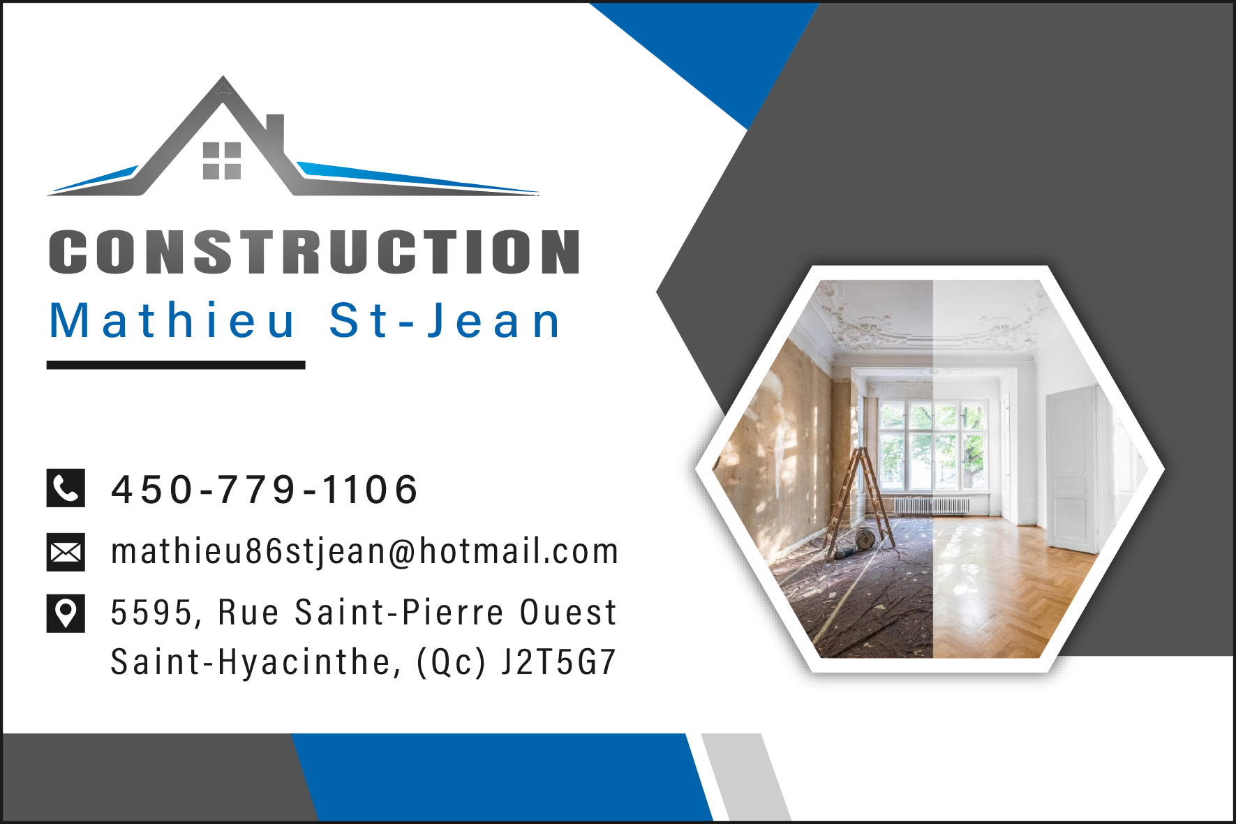 | Services | CONSTRUCTION MATHIEU ST-JEAN INC est une entreprise œuvrant dans le domaine de la construction résidentielle et commerciale. Grâce à son savoir-faire, elle propose des services de qualité, parfaitement adaptés aux besoins de chaque client, en assurant une prise en charge professionnelle à toutes les étapes du projet.