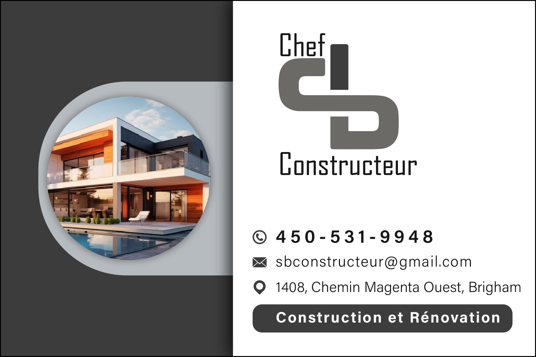 Services CHEF SB CONSTRUCTEUR INC est une entreprise spécialisée dans la construction et la rénovation, offrant des services complets pour les projets résidentiels et commerciaux. Elle prend en charge toutes les étapes, de la planification à la réalisation, incluant les nouvelles constructions, les travaux de rénovation intérieure et extérieure ainsi que l’amélioration des espaces.